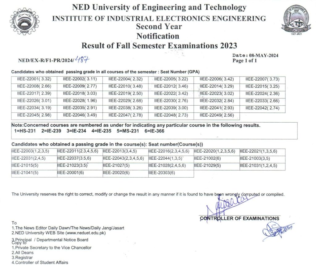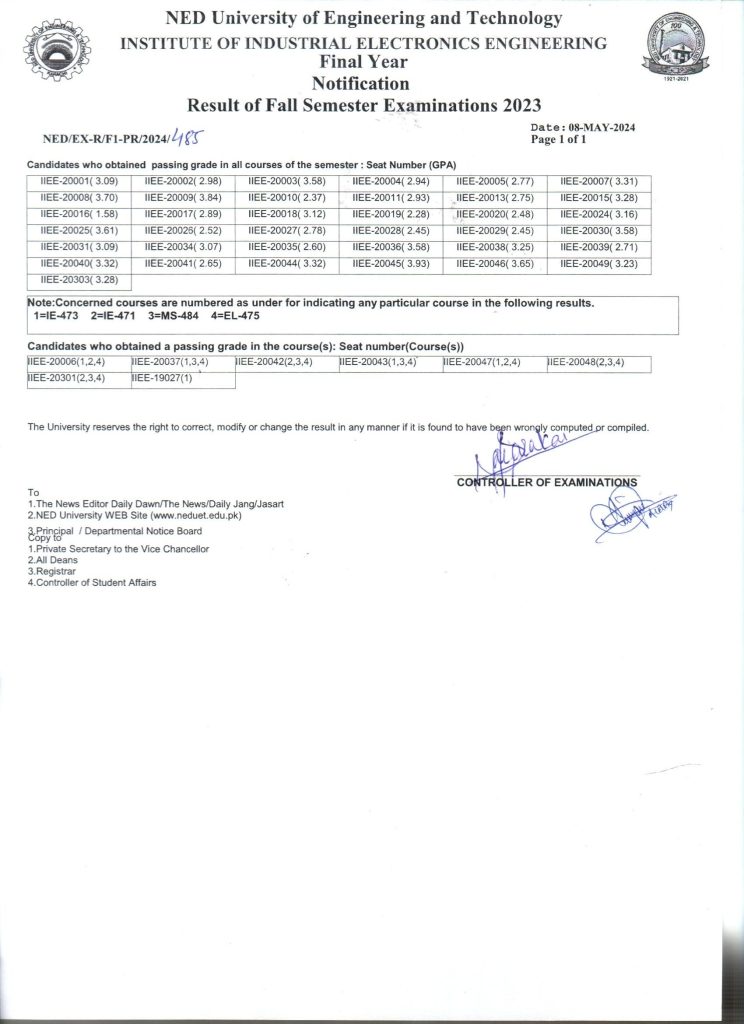 Posted on 08 May 2024 / 1 / iiee IIEE – INSTITUTE OF INDUSTRIAL ELECTRONICS ENGINEERING RESULTS (FALL SEMESTER EXAMINATIONS 2023 ) News